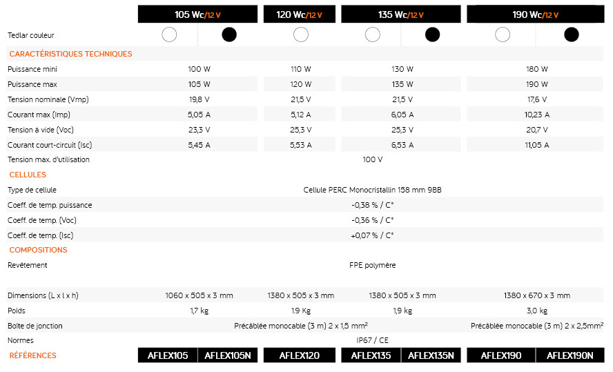 Cellule PERC 9BB - FPE - Tedlar noir 12V - Puissances 105 à 190Wc