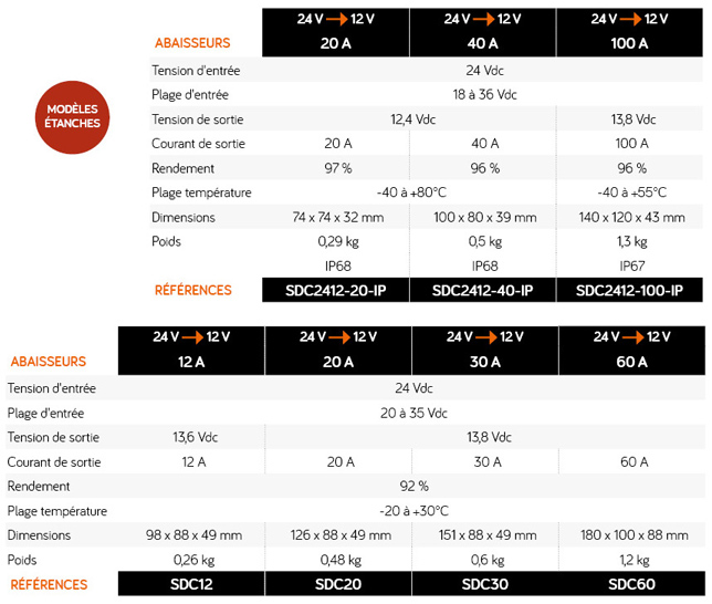 Abaisseurs de tensions 24/12V 12 à 100A